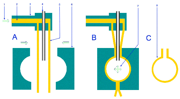 • Topirea materialului plastic si formarea unui tub de plastic, prin care poate trece aer comprimat.